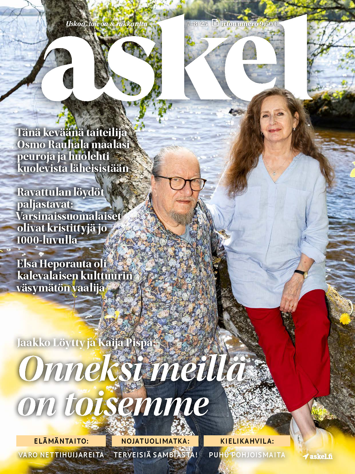 Askel är en finskspråkig tidskrift som bjuder på en stillsam och fördjupande läsupplevelse. Den utkommer 11 gånger per år och vänder sig till alla som söker andligt djup, stunder av tystnad och en känsla av hopp i vardagen. Askel är en tryckt tidskrift att återvända till när livet går i högt tempo, en källa till inspiration, andlighet och styrka genom livets olika skeden.