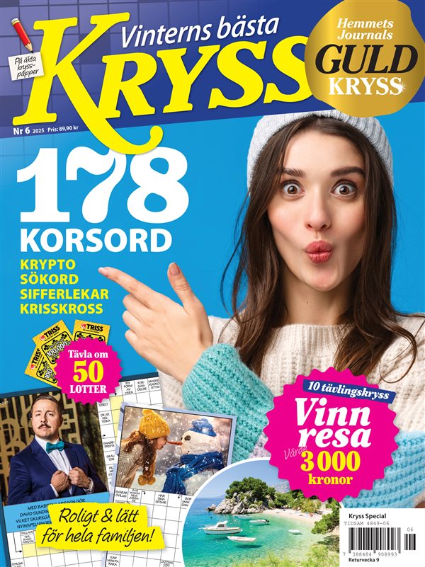 Hemmets Journals Guldkryss är krysstidningen för dig som vill ha lite mer utmaning, mycket variation och massor av rolig hjärngympa i ett och samma paket. Tidningen bygger vidare på Hemmets Journals populära korsordstradition – men här får du ett ännu bredare och lyxigare urval av kryss och pyssel. Det är den perfekta tidningen för dig som älskar att lösa korsord som engagerar både hjärna och humör!