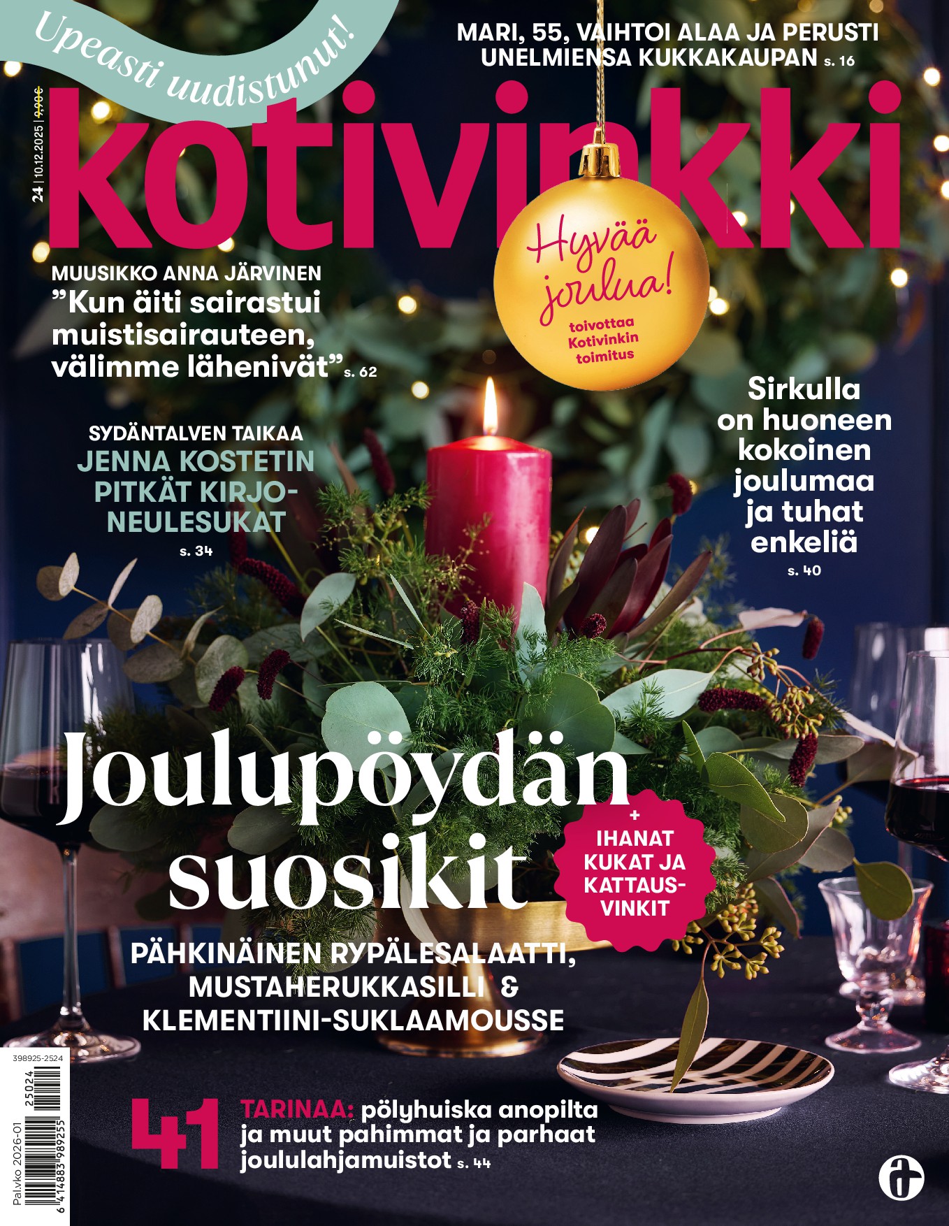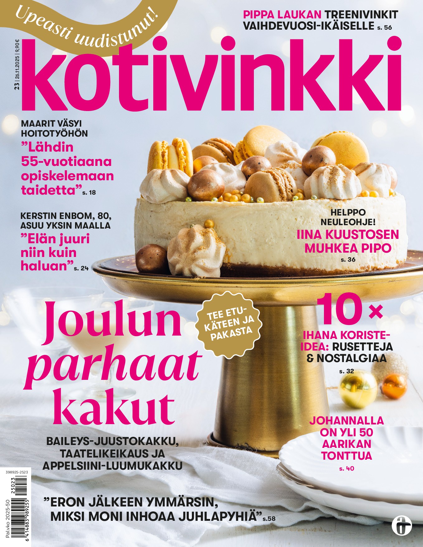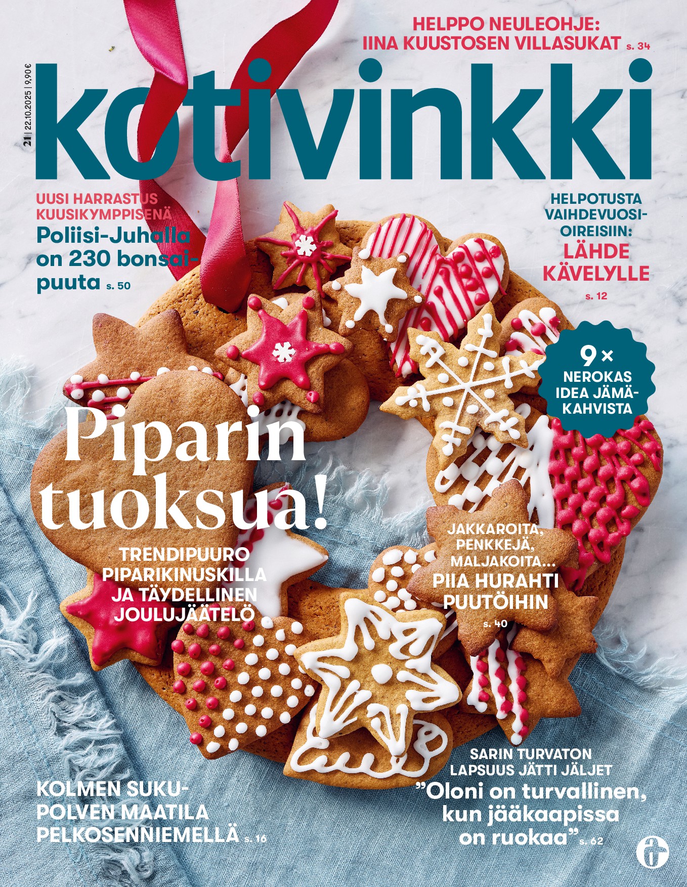 Kotivinkki keskittyy siihen, mikä elämässä on tärkeää: kotiin, läheisiin ja mielen hyvinvointiin. Lehti on täynnä elämän hyvyyttä ja syvyyttä. Se tekee arjesta hauskempaa, ruoasta parempaa ja kodista viihtyisämmän. Kotivinkki tarjoaa myös pysähdyttäviä ajatuksia ja muistuttaa, että maailmassa on monta tapaa olla onnellinen.Kotivinkin jokaisessa numerossa saat inspiroivia ideoita kotiin, kohtaat aitoja ihmisiä ja löydät testattuja, ajankohtaisia ja helppoja reseptejä arkeen ja juhlaan.